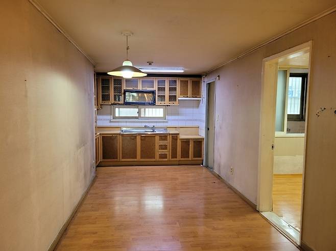 저희의 보금자리는 아내가 가장 좋아하는 동네에 있습니다. 다만, 저희가 계약한 집은 올해로 20년이 된 구축 아파트여서 많은 수리가 필요했어요. 2000년대 초에 지어진 아파트 답게 2bay 형태로 거실과 안방의 공간이 넓고 주방은 직사각형의 형태로 길게 설계되어 제약이 많은 구조입니다.