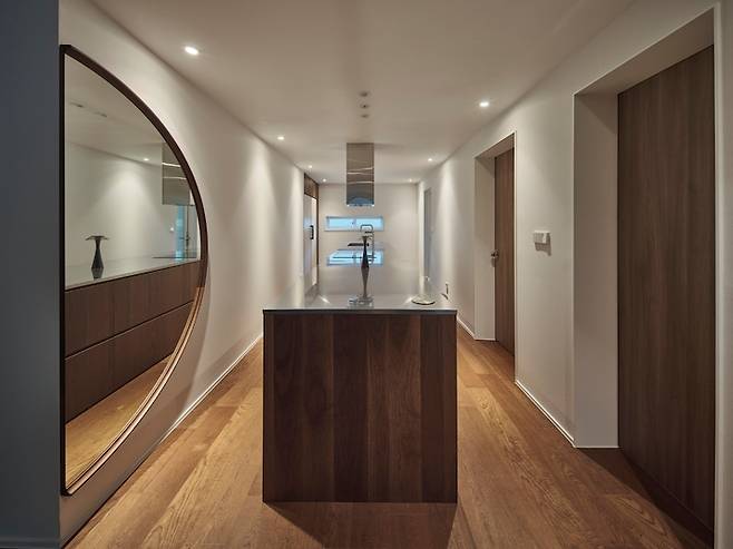 이 사진은 드레스룸에서 바라본 화장대 공간의 모습인데요, 이 공간을 화장실이 아닌 화장대이자 통로로 변경한 것은 정말 잘한 선택이었습니다.