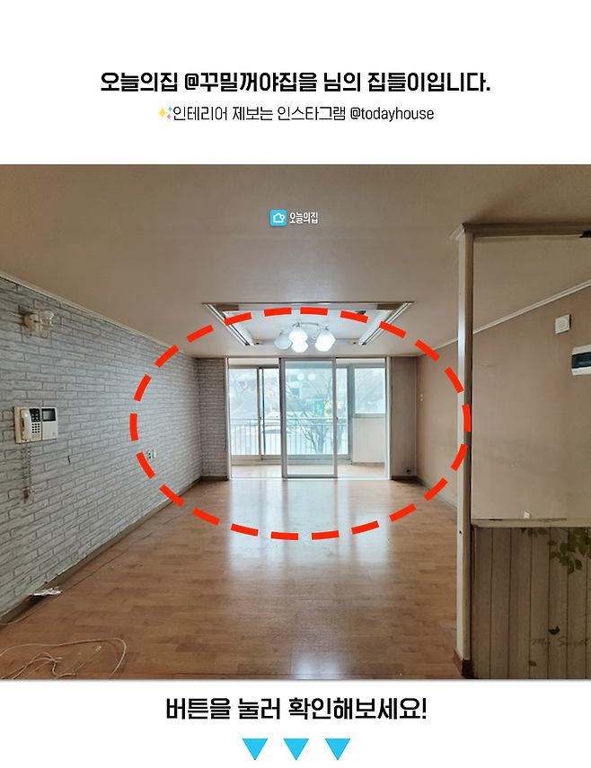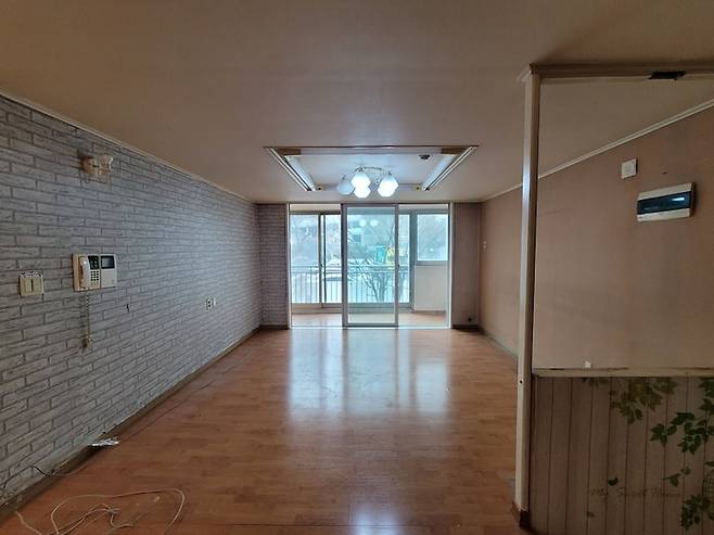다음으로는 거실인데요, 거실과 베란다 사이의 날개벽이 보이시죠! 처음엔 날개벽을 철거해 거실을 완전히 확장할 수 없다는 점이 꽤나 절망적으로 느껴졌습니다.