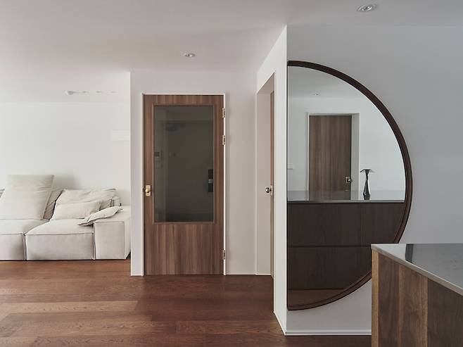마지막으로는 안방 출입문의 각도를 대각선으로 변경한 소소하지만, 무드의 큰 변화를 준 점입니다. 저희 집은 안방과 거실의 크기가 거의 비슷했기 때문에 안방 출입문을 과감히 대각선으로 변경할 수 있었습니다.