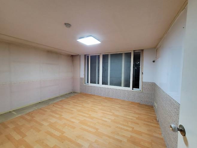 그리고 그 외의 벽은 모두 화이트 페인트로 도장 작업을 했고 바닥은 아이보리 타일을 깔았습니다.