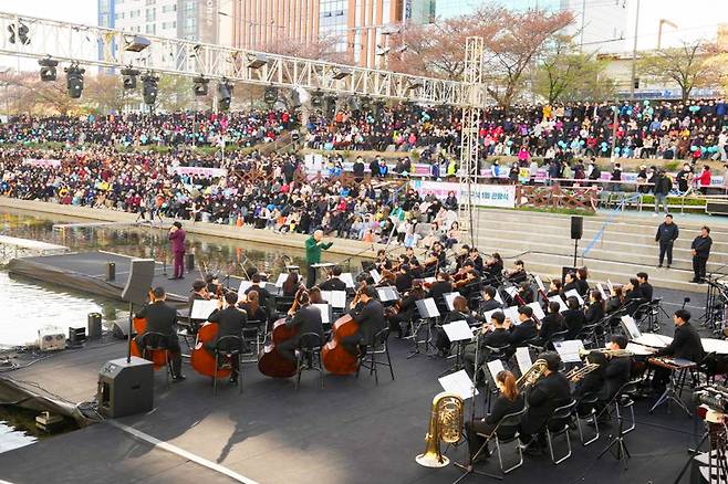 불광천 산책로를 따라 흐드러진 벚꽃 아래 펼쳐지는 다양한 체험 부스와 공연 프로그램은 남녀노소 누구나 즐기기 충분하다.