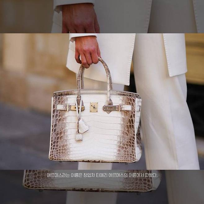 프랑스의 하이앤드 명품 브랜드인 에르메스는 루이비통, 샤넬과 함께 세계 3대 명품 브랜드 중 하나이다. 물론 그중 가장 최고는 에르메스로 평가되고 있다. 에르메스라는 이름은 창업차 티에리 에르메스의 이름에서 따왔다. 원래 에르메스는 마구를 만들던 회사였는데, 그렇기 때문에 마차 모는 사람이 브랜드 대표 이미지이기도 하다.