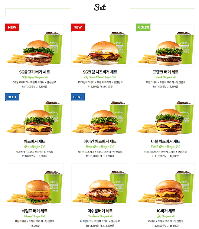 - SG불고기 버거 : Regular 3,800원 / Large 4,800원