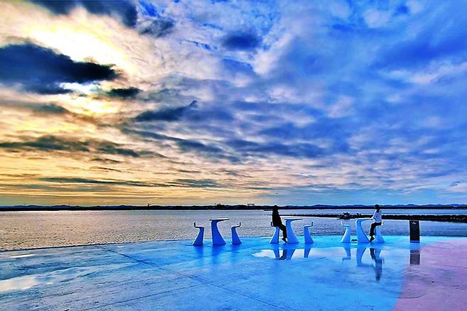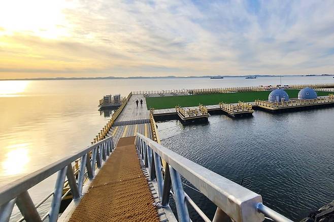 또한 천수만을 끼고도는 ‘임해 관광도로 드라이브 코스’의 출발점으로 천수만의 아름다운 풍경도 볼 수 있습니다. 궁리항 해변가를 산책하다 보면 5,057㎡ 규모의 해상 테마파크, ‘놀궁리 해상파크’를 만나게 되는데요.