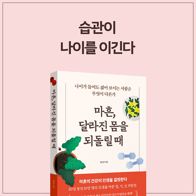 몸도 마음도 예전 같지 않고 환경도 달라진 지금, 불확실한 미래에 마음을 쓰기보다 어떤 일이 생겨도 단단하게 대처할 수 있도록 자기 자신을 가다듬고 인생 후반을 나답게 살 수 있도록 이끌어줄 건강한 몸을 만드는 것이 중요합니다. 40대는 습관을 고치기 어려운 나이이지만, 노년기에 발생하는 각종 만성질환이 나타나기 시작하는 시기인 만큼 다른 질병을 예방하기 위해서라도 나를 가다듬어야 합니다.
