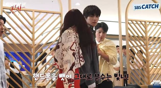 강한 힘으로 카리스마를 발산한 박신혜는 "휴대폰에 구멍 안 났나? 뭔가 쑥 들어가는 느낌이 들었다"며 걱정을 전했다.