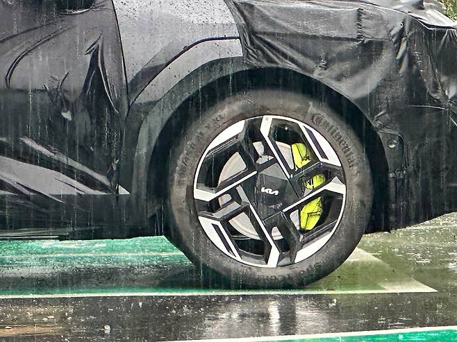 녹색 캘리퍼를 장착한 기아 EV9 GT의 스파이샷이 등장했다. 기존에 자주 보지 못했던 캘리퍼 색깔이 인상적이라는 평가가 나온다.