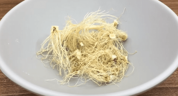 파 뿌리 10g을 깨끗이 씻은 뒤 물 1리터와 함께 냄비에 넣고 끓입니다.