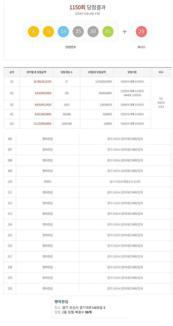 현재 로또 2등만 50개 당첨된 사람