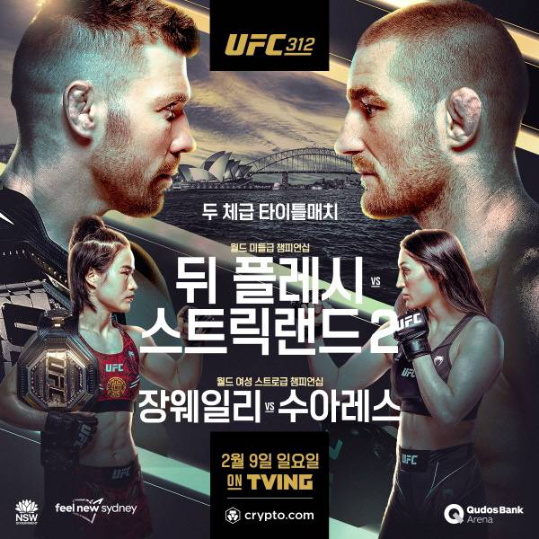 반면 뒤 플레시는 자신에게 야유를 보내는 시드니 관중들에게 “(지난 경기를 치른) 퍼스가 시드니보다 훨씬 낫다. 당신들은 패배자처럼 야유를 보내고 있다. 퍼스에서와 마찬가지로 당신들이 좋아하는 스트릭랜드를 쓰러뜨릴 것”이라며 도발했다. 뒤 플레시는 지난해 8월 호주 퍼스에서 열린 UFC 305에서 이스라엘 아데산야를 페이스 크랭크 서브미션으로 꺾고 1차 방어에 성공했다.