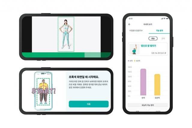 스마트폰 앱을 작동시켜 디지털치료제를 활용하고 있는 가상 화면. 환자는 근골격계질환 재활운동 솔루션(앱)을 통해 전문의가 직접 처방한 재활운동 치료를 일상에서 수행한다. 의료진은 해당 데이터를 모니터링해 경과를 확인한 후 적합한 치료를 처방한다. 에버엑스 제공