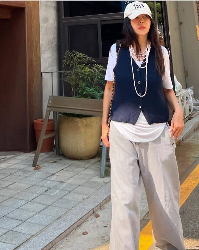 황신혜는 화이트 반팔티 위에 회색 니트 베스트를 레이어드해 차분하고 스타일리시한 분위기를 자랑했습니다.