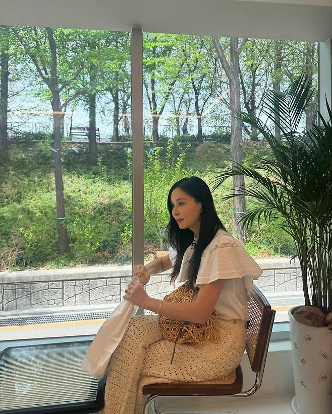 고소영이 선택한 오늘의 룩은 바람처럼 가볍고 자연스러운 분위기가 매력적이었어요.
