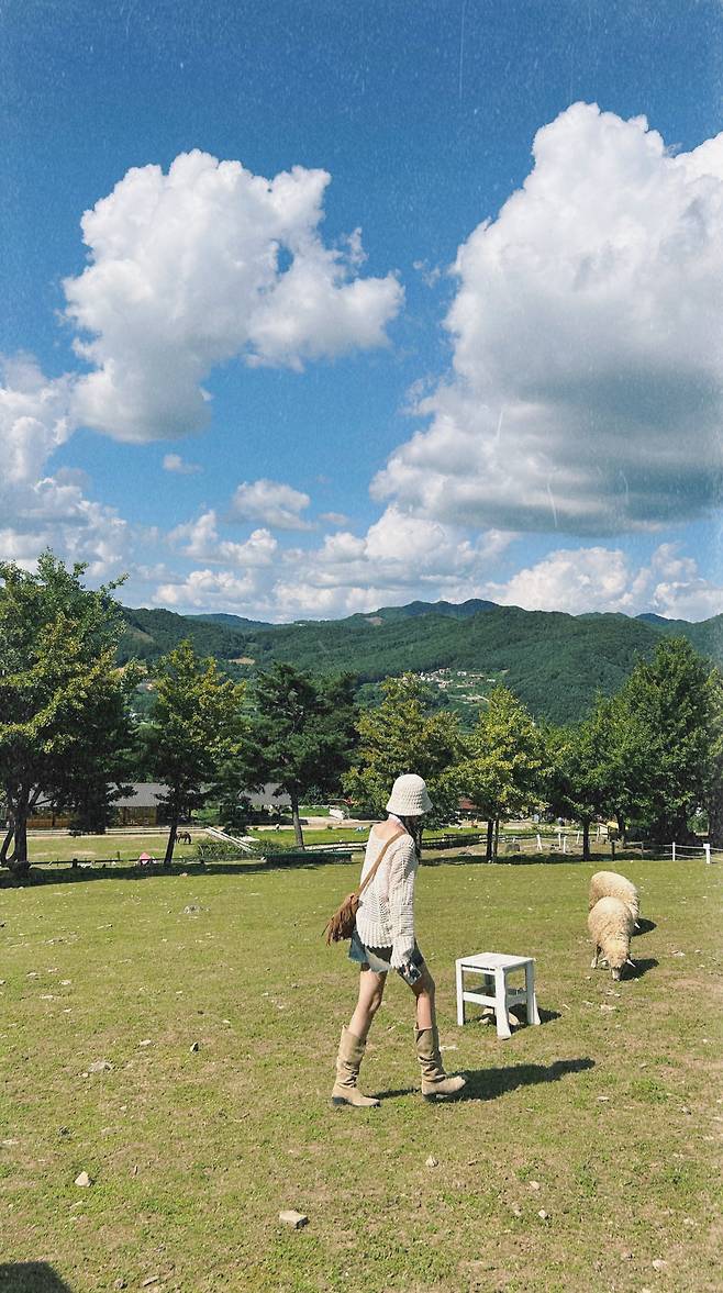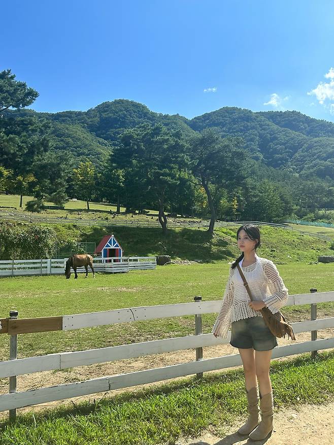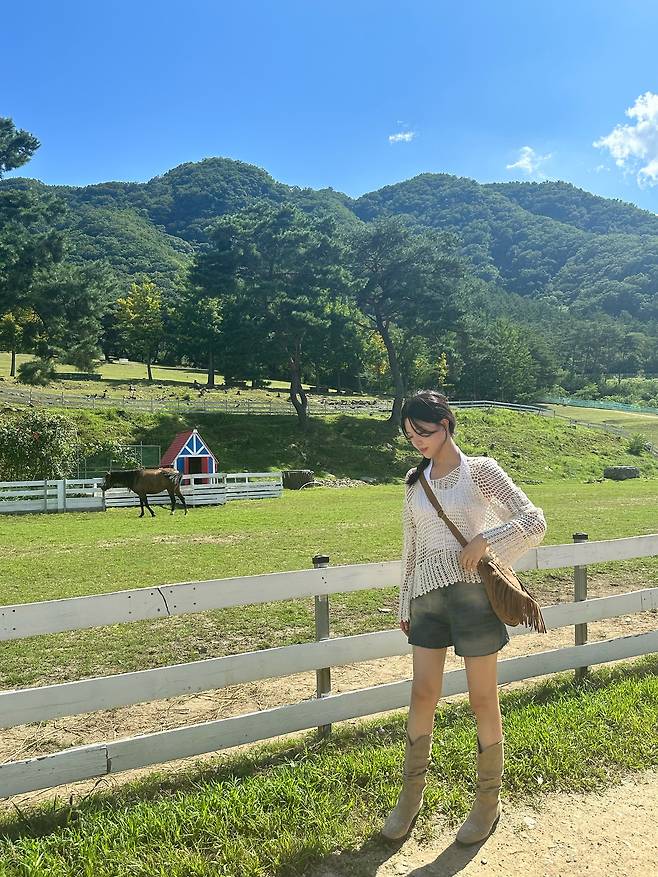 푸르른 초원이나 목장에서 입으면 한국이지만 이국적인 사진을 건질 수 있는 코디입니다.