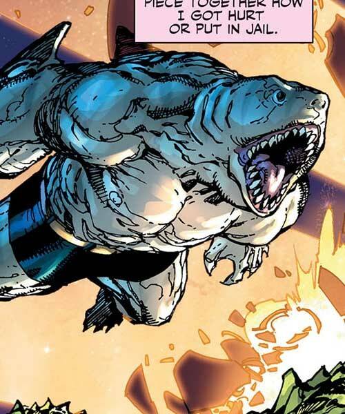 물에 빠진 사람을 구하다가 크게 다친 수영선수가 검증 안 된 실험을 받았다. 수영을 위해서 아틀란티스의 네이머와 뱀상어의 DNA와 자신으 것을 혼합하는 방식으로 인간 상어로 변모시했다.