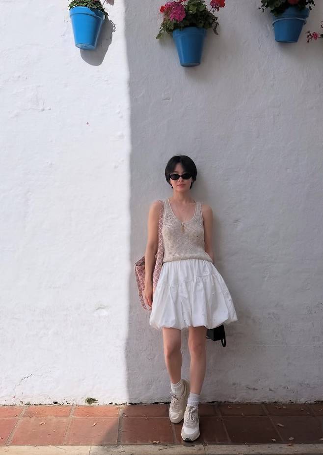 배우 송혜교가 감각적인 리조트룩으로 여름 분위기를 물씬 풍기는 일상 사진을 인스타그램에 공개했습니다.