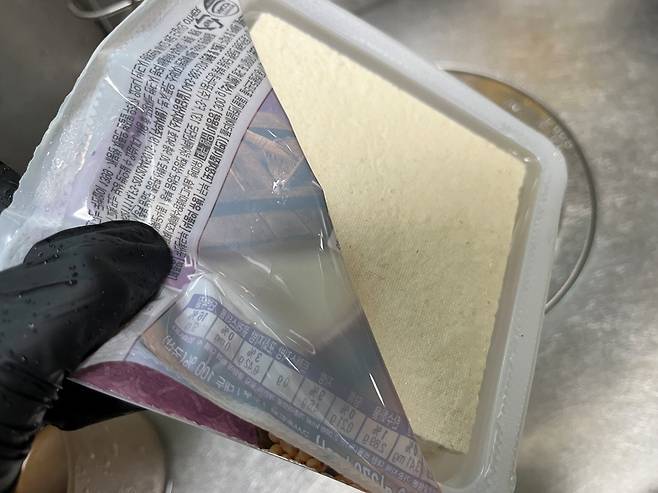 그 핵심은 바로 두부 속 수분을 얼마나 효율적으로 제거하느냐에 달려 있습니다. 먼저 두부 안에 들어 있는 간수를 따라 버리세요. 그다음 깨끗한 물에 두부를 가볍게 헹굽니다.