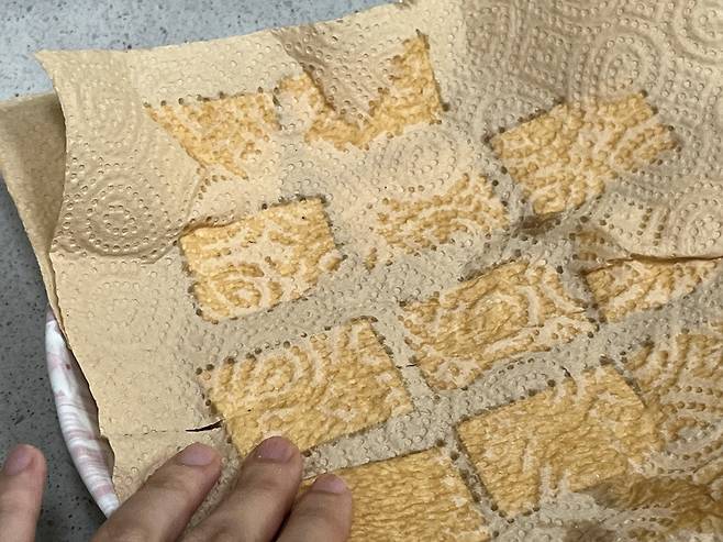 전자레인지 조리를 마친 후에도 물기가 미세하게 남아있다면 키친타월을 활용해 완벽하게 마무리할 수 있습니다. 접시 바닥에 고인 큰 물기를 먼저 따라 버린 뒤, 두부 위아래를 키친타월로 가볍게 눌러주세요. 이미 열기에 의해 수분이 밖으로 밀려 나온 상태라 살짝만 접촉해도 남은 습기가 순식간에 흡수됩니다.