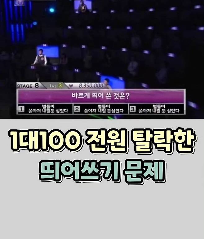 1대100 전원 탈락한 띄어쓰기 문제
