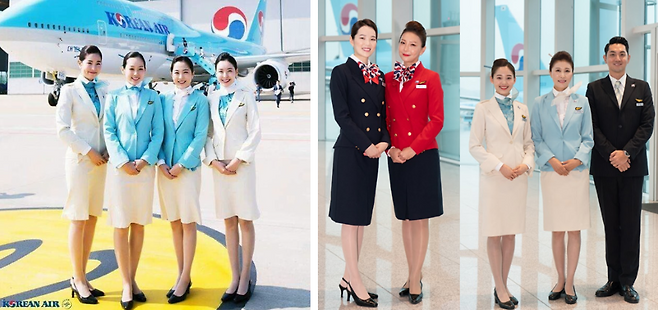 대한항공의 경우 신입이나 일반 승무원은 베이지색, 부사무장과 사무장은 청자색 자켓을 착용합니다. 직급 체계는 자켓뿐만 아니라 월급에서도 차이가 났습니다.