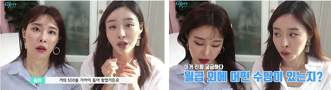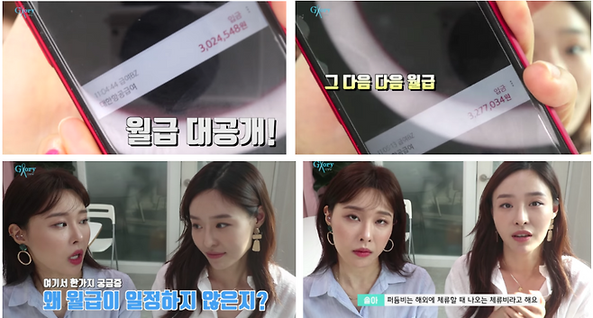 유튜브 채널 글로리 자매는 현재 승무원으로 일하고 있지는 않지만, 이전에 받은 월급을 공개했습니다. 통장에 찍히는 실수령액이 300만원, 또는 320만원으로 대략 300만원 대 초반의 금액을 월급으로 받은 것을 확인할 수 있습니다. 이 금액은 퍼듐비를 제외한 금액입니다.