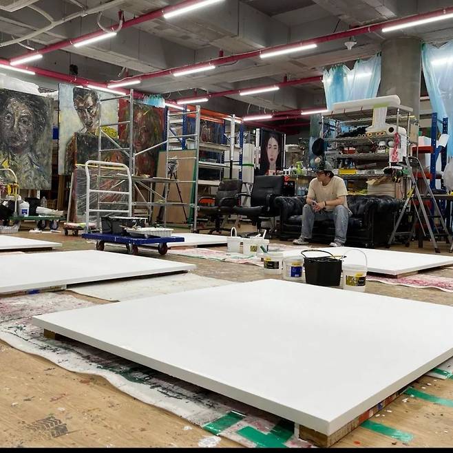 지난 5월 21일 자신의 SNS에 별다른 멘트 없이 대형 캔버스 여러 장을 두고 고뇌하는 자신의 모습을 공개한 박신양. 박신양과 캔버스라니 무슨 연관이 있나 궁금하신 분들이 꽤 계실 텐데요.