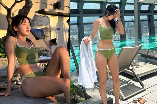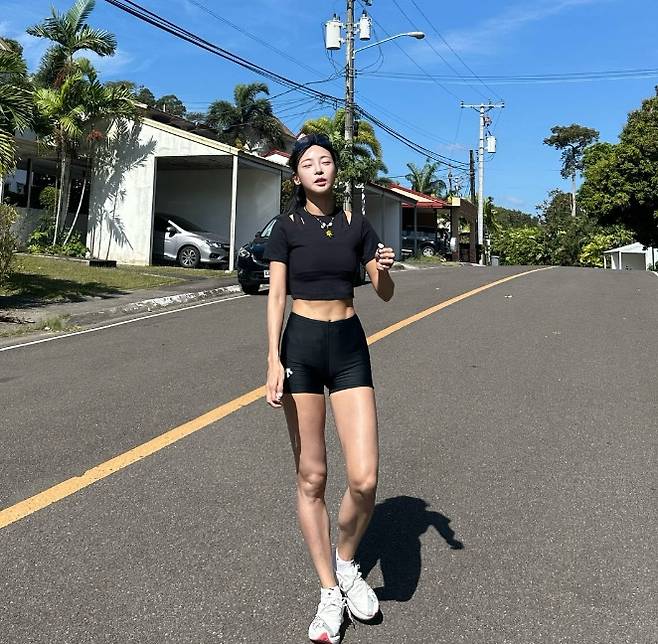 인스타 스타인 김민지는 다양한 애슬레저룩도 선보였다.