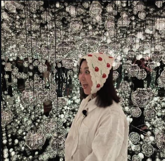 코미디언 김숙이 최근 인스타그램에 "간김에 나도 한번 찍어봤어요~~ 이곳에서 무조건 인생사진 나온다는데... 음... #팀랩 보더리스 #도쿄 #톡파원25시"라는 글과 함께 여러 장의 사진을 게재했습니다.