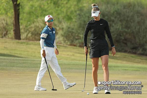 하지만 9번 홀(파4)에서 짧은 파 퍼트를 놓치며 흐름이 끊겼다. 이어진 10번 홀(파3)에서도 보기를 기록했다. 해당 홀에서 김효주가 티샷을 핀 바로 옆으로 붙여 버디를 낚은 반면, 코다는 파 세이브에 실패했다.