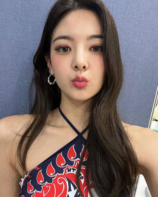 짙은 아이 메이크업을 했다면 있지 리아처럼 옅은 컬러의 블러셔를 눈 밑 광대 부근에 좁게 터치해 미세한 색감만 더해 보는 것도 좋은 방법.