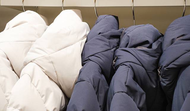 패딩은 충전재가 아무리 좋아도 겉감이 받쳐주지 않으면 아무런 효과가 없습니다. 좋은 구스다운을 써도 방수가 되지 않는다면 충전재가 젖어버려 보온력에도 문제가 생기겠죠, 그리고 바람을 잘 막아주는지, 열은 잘 보존되는지도 중요합니다. 털이 빠져나오지 않는 촘촘한 겉감도 중요해서 실의 굵기를 확인하기도 하는데요, 이 수치가 낮을수록 원단의 밀도가 높아 촉감이 부드럽고 속의 깃털이 밖으로 새어 나가는 것도 막아주게 됩니다.