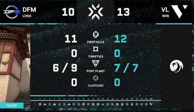 잠시 휴식 후 두 번째 맵 헤이븐에 입장한 2팀. 이번 경기에도 2팀은 점수를 주고받으며 힘의 균형을 이뤘고, 8라운드 기준 4대4 동점을 기록했다.