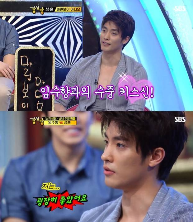 성훈은 과거 방송된 SBS '강심장'에서 "드라마를 촬영할 당시 임수향이 이상형이었다"고 고백했습니다. 이어 성훈은 극 중 임수향과의 키스신을 언급하며 "정말 좋았다"며 임수향에 대한 호감을 감추지 않았습니다.