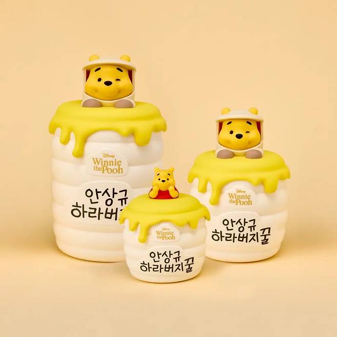 40년 벌꿀 외길 인생 안상규와 꿀을 사랑하는 캐릭터 곰돌이 푸가 만났다. 꿀단지 안에 빠진 곰돌이 푸 캐릭터 패키지 벌꿀이다. 할아버지가 아니라 ‘하라버지’라고 적혀있어 곰돌이 푸가 말하는 것 같다. 롯데백화점 잠실점 팝업 스토어에서 판매하며 공식몰(https://tinyurl.com/4ce5f8sp)에서는 10월 중순부터 구매할 수 있다.