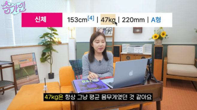 그녀는 “인터넷에 내 키가 153cm로 정확하게 나와 있다”며 “무명 시절엔 158cm로 적어뒀는데, 안 되겠다 싶어 나중에 수정했다”고 밝혔다.