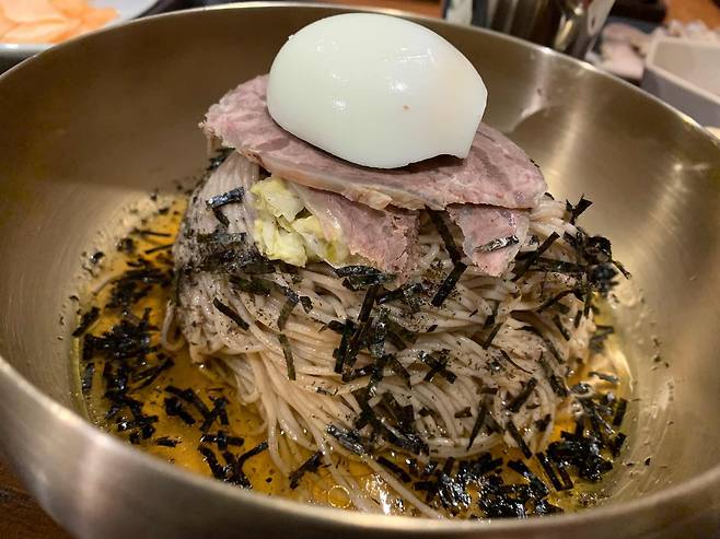주문음식 : 평양식 물냉면, 들기름 비빔면, 제육