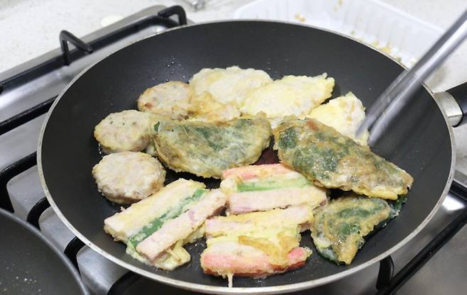첫 번째는 동그랑땡이에요. 어릴 때부터 명절이면 할머니가 꼭 부치셨던 기억이 나요. 소고기와 돼지고기, 채소를 다져서 둥글게 빚고, 노릇하게 부치면 그 고소함이… 아, 말로 다 표현할 수 없어요.