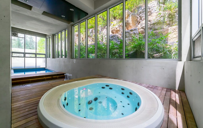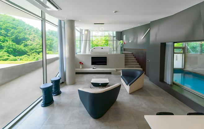 홍천 유리트리트 풀빌라는 이름 그대로 일상에서 벗어나 자신을 위한 시간을 가질 수 있는 곳이에요. 한국건축문화대상 대상을 수상한 만큼 근사한 디자인을 자랑하고, 객실에는 최고급 제트스파와 미온수 수영장이 마련되어 있어 추가 요금 없이 이용할 수 있어요. 넓은 통창 너머로 펼쳐지는 마운틴뷰는 마음을 편안하게 만들어 준답니다.