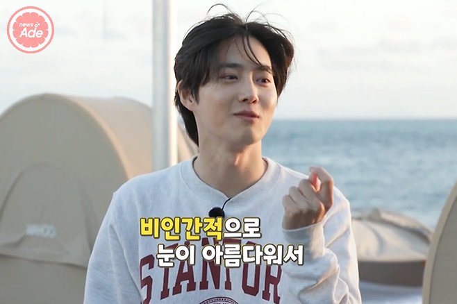 수호는 햇빛에 비친 이유영의 눈을 보며 "지금 눈이 너무 예쁘다. A.I 같다. 어떻게 눈동자 색이 녹색이냐. 비인간적이다. 햇빛 때문에 더 예뻐 보인다. 비정상적으로 예쁘다"고 칭찬했다.