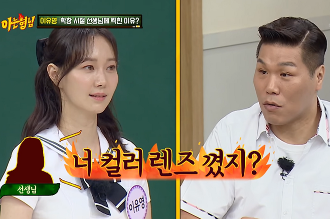 이에 서장훈은 “이유영의 눈동자 색깔이 되게 신비롭다”면서 “학교 다닐 때 선생님이 ‘너 컬러 렌즈 꼈지?’ 하면서 멋 부리고 다닌다고 오해하지 않았냐”라고 말해 정답을 맞혔다.