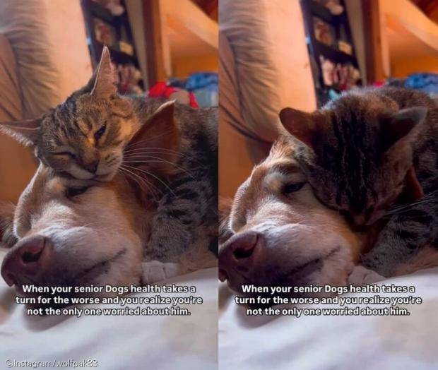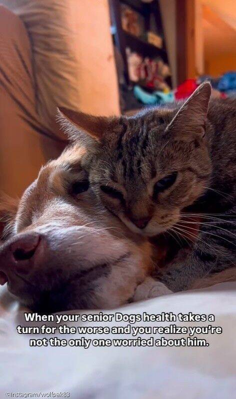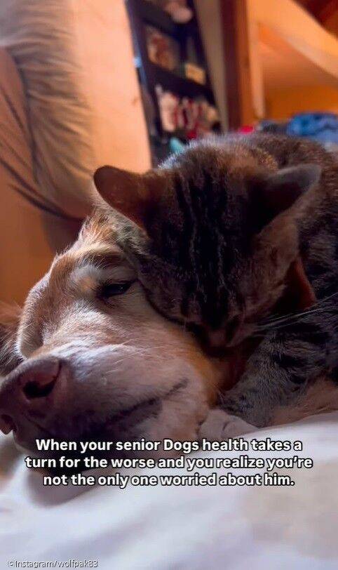 미국 뉴잉글랜드 지역에 사는 16살 반려견 '폭스(Fox)'와 고양이 '링크스(Lynx)'의 보호자는 지난 7일 자신의 인스타그램 계정에 "순수한 사랑과 연민"이라는 설명과 함께 한 편의 영상을 게시했다.