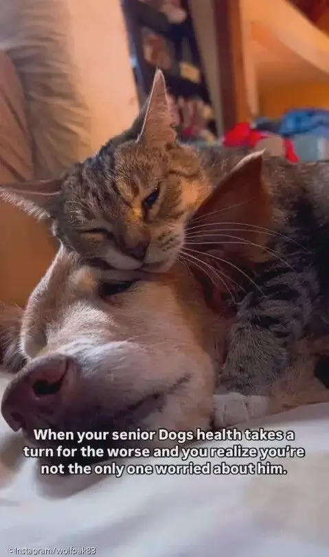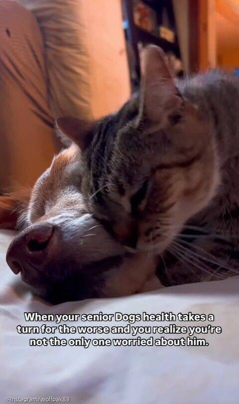 미국 뉴잉글랜드 지역에 사는 16살 반려견 '폭스(Fox)'와 고양이 '링크스(Lynx)'의 보호자는 지난 7일 자신의 인스타그램 계정에 "순수한 사랑과 연민"이라는 설명과 함께 한 편의 영상을 게시했다.