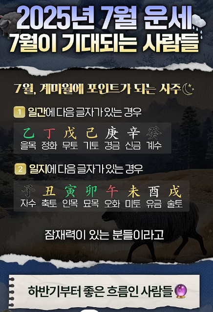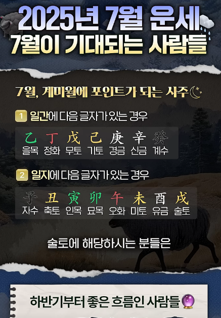 그래서 오늘은 올해 7월 기대되는 운세와 더불어 사주 초보자도 쉽게 이해할 수 있는 꿀팁을재미와 실용 중심으로 소개해드릴게요! 😊