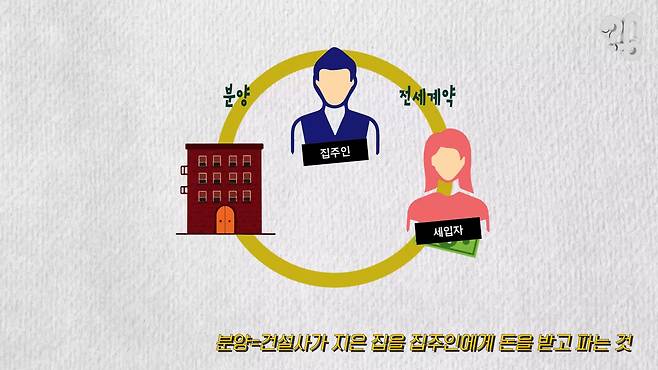 청년층이 전세 사기에 피해를 당하기 쉬운 이유 첫째, 건축업자부터 공인중개사, 집주인까지 세입자만 빼놓고 전부 한통속인 경우가 많기 때문이다. 요새 특히 늘어난 신축 빌라를 이용한 이른바 ‘동시진행’ 방식이 대표적인 사례다. 동시진행이란 분양과 전세 계약을 동시에 진행하는 것을 의미한다. 집주인이 세입자의 보증금만 갖고 분양을 할 수 있는 구조다.