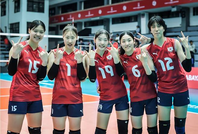 | ▲ 2025 여자배구 U21 세계선수권 대표팀 '고교 5인방'...왼쪽부터 이지윤, 박여름, 오세인, 최윤영, 박서윤(195cm) |