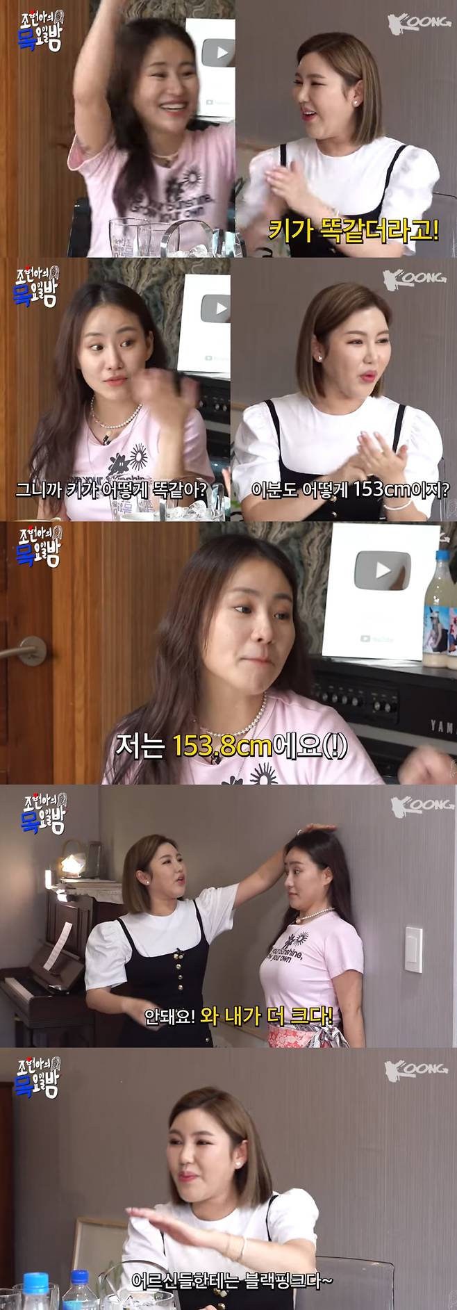 이에 조현아는 "언니 제가 153.8cm이다. 제가 좀 더 큰것 같다"고 도발했고, 송가인은 "키가 좀 줄으신거 아니에요? 들어올 때 보니까 제가 더 큰 것 같은데"라고 받아쳤다.