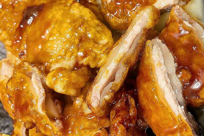 라면땅이 겉에 붙어있는 매콤한 핫도그. 어떤 먹잘알이 라면을 핫도그에 붙일 생각을 했을까요. 정말 천채ㅠㅠ.