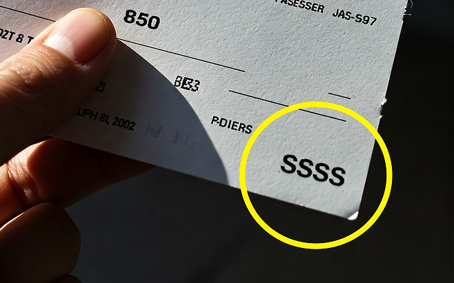이른바 ‘SSSS(Secondary Security Screening Selection)’는 미국 교통안전청(TSA)이 정한 ‘2차 보안 검색 대상자’임을 나타내는 표시다.