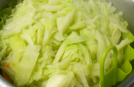 양배추채를 전자레인지 용기에 담고 물을 부어 6분간 돌려주세요.